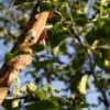 länglich eiförmig, lang zugespitzt, gelbgrün, im Sommer mattgrün bis bläulichgrün; Herbstfärbung gelb