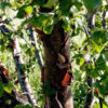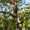 Rinde weißlich-rosa, abrollend, dann leuchtend kupferrot
